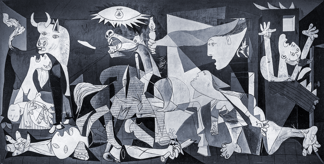 Creado en 1937, Guernica de Pablo Picasso es una de las obras más emblemáticas y espectaculares del siglo XX y, sobre todo, un ícono en la búsqueda de una identidad colectiva. El monumental lienzo en blanco y negro, sobre el que vemos toda clase de figuras fragmentadas —un caballo herido, un toro, una madre que llora a su hijo muerto—, fue pintado tras el bombardeo de la villa vasca de Guernica durante la Guerra Civil Española. Concebido para el pabellón español de la Exposición Internacional de París, el cuadro no solo denunció la violencia del fascismo, sino que ofreció una nueva forma de memoria visual. A través de su inconfundible trazo cubista, la tragedia española se transformó en un lenguaje universal, en el que el dolor de una nación fracturada, se volvió el dolor de todos, poniendo un especial acento en la humanidad como un rasgo necesario e imprescindible frente a la barbarie. Guernica nos recuerda algo sencillo pero fundamental: las identidades se construyen también a partir de la memoria de sus heridas y de la resistencia ante la destrucción.