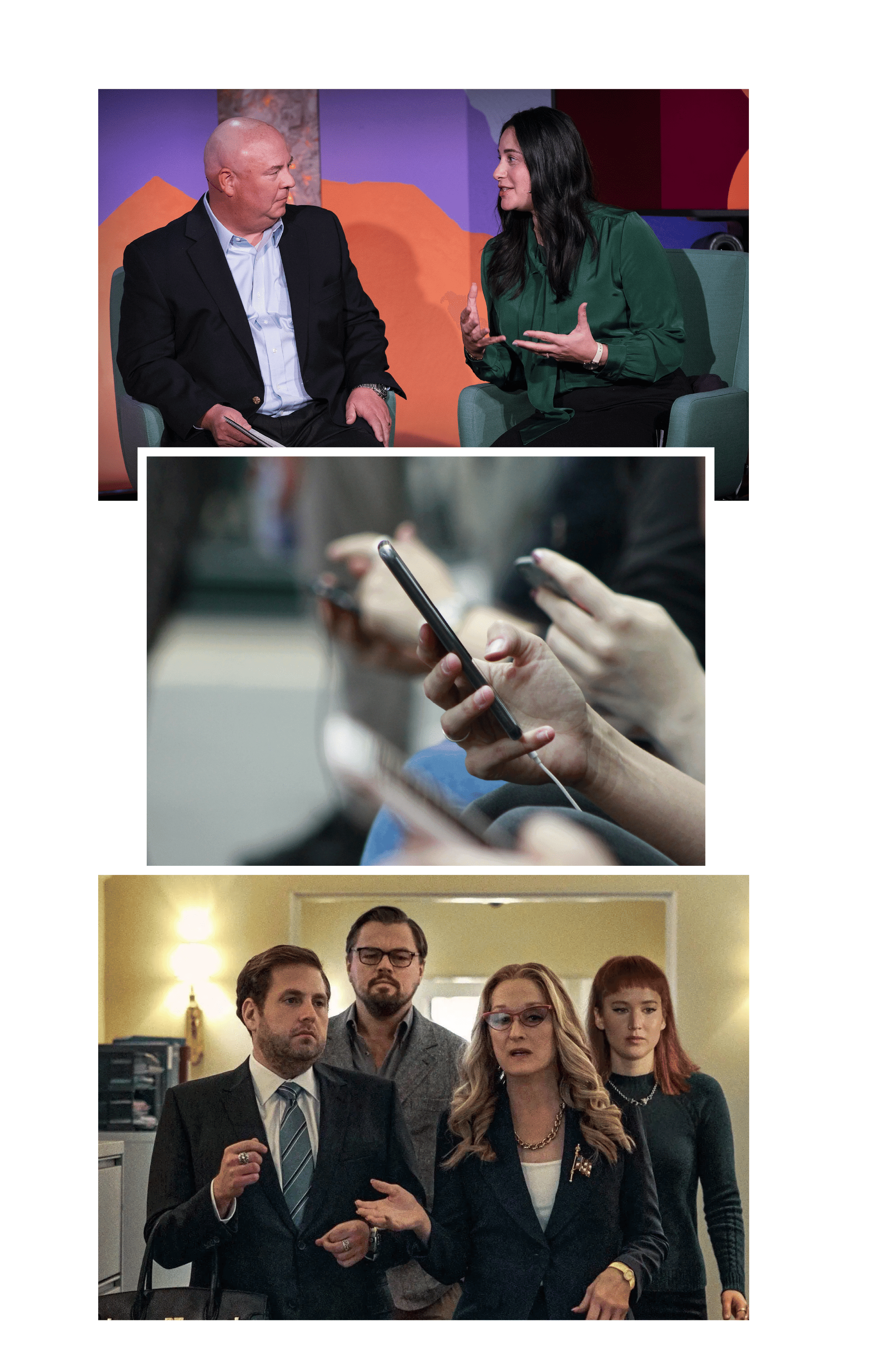 Esta comedia negra muestra cómo, ante una amenaza inminente (un cometa que se aproxima a la tierra), la sociedad puede defender posiciones sin sentido: medios que convierten todo en espectáculo, partidos que usan la crisis para hacer campaña, redes llenas de memes y conspiraciones. La película exagera hasta el absurdo cómo la polarización vuelve imposible algo tan básico como ponernos de acuerdo frente a un acontecimiento que, ni más ni menos, pone en riesgo la supervivencia de la humanidad.